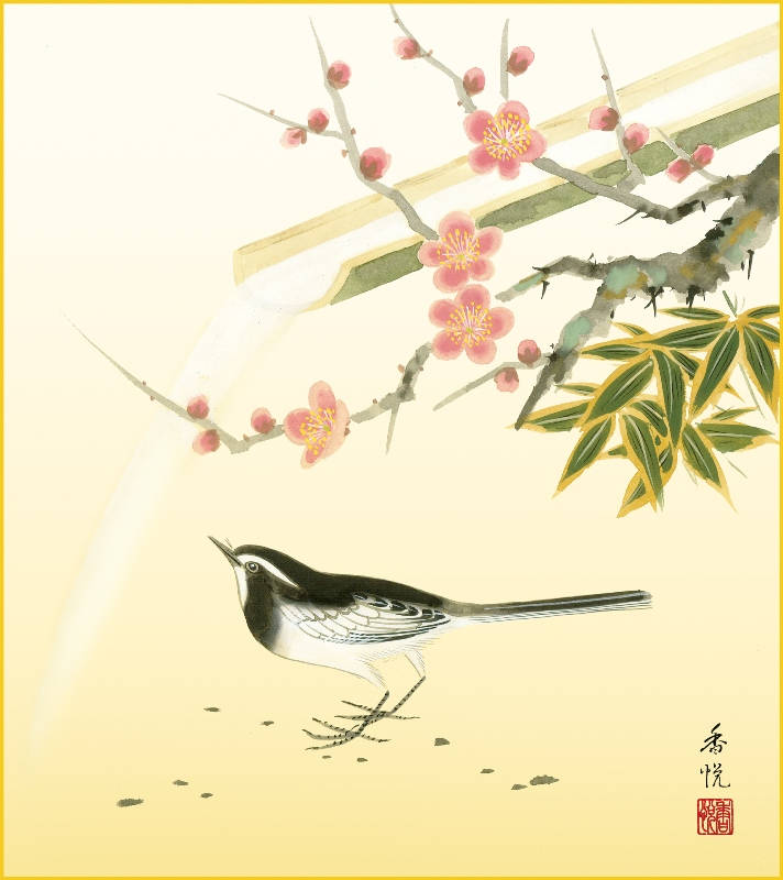 サイズ:幅31×高さ75cm■手彩特色工芸色紙花鳥画 春/春飾り色紙セット色紙:k5-018a掛軸:八坂緞子色紙掛掛軸:kh2yac-003西尾香悦 句松竹梅表装裂:洛彩緞子・綿支那バー軸先:合成樹脂化粧箱収納色紙は入れ替え可能ですので、お手持ちの色紙と交換して飾ることも出来ます。